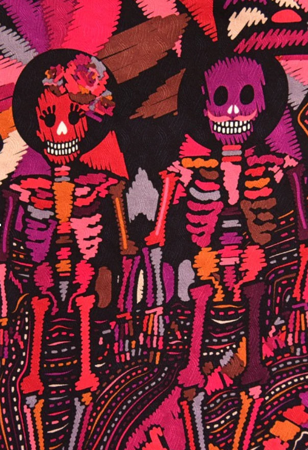 And the Pineda Colvalin huipil (photo) creates a spooky vision for Day of the Dead.
