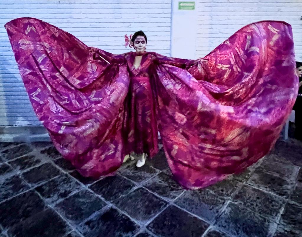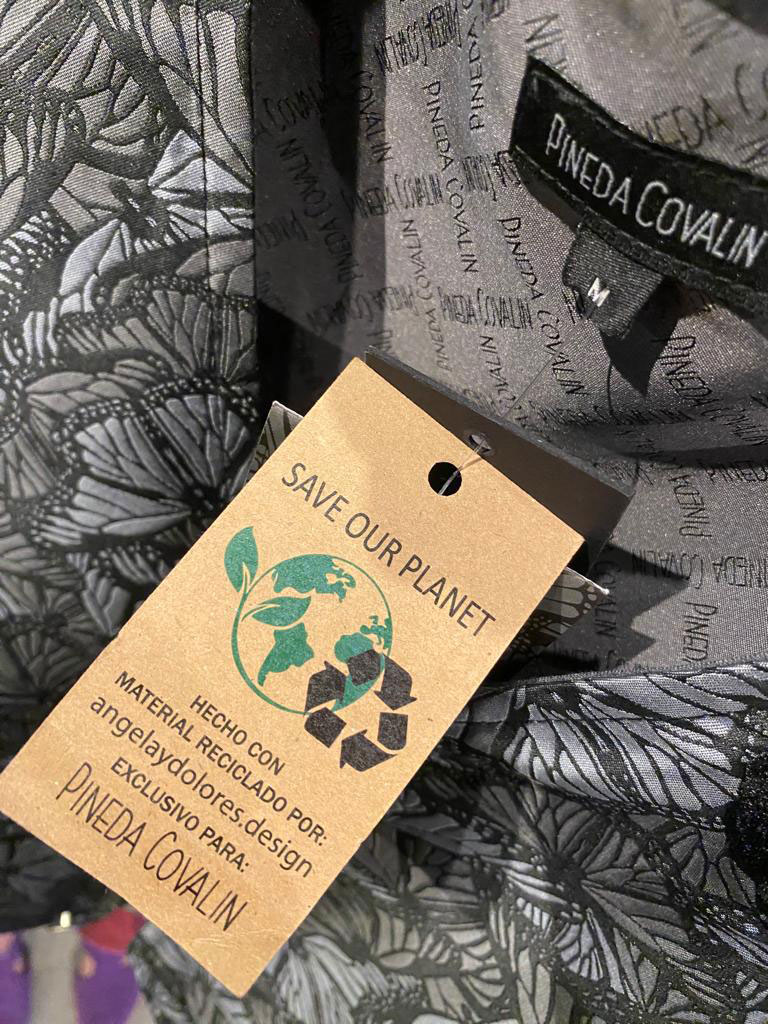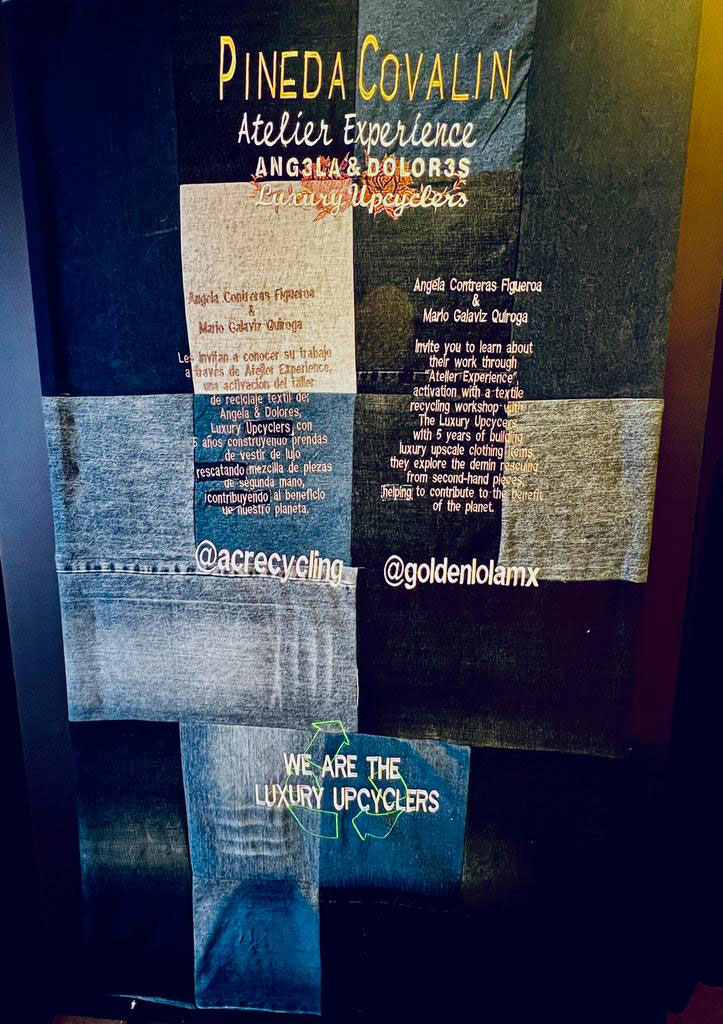 You walk in, past oodles of galleries at the Fabrica Aurora — San Miguel’s art-gallery-central — and find yourself in the magical, silk-laden space of Pineda Covalin. But this is not like the normal PC you find at all the major airports. This is the PC of San Miguel de Allende, the magic city — with clothing artists on exhibit, Angela and Mario. Here in the back studio, Angela and Mario transmute the fabrics of the world’s garment overproduction into cunning new customized clothes.